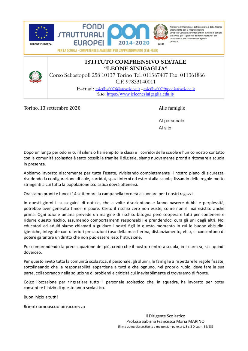 Si comunica alle famiglie e al personale la sospensione dell'attività didattica delle classi della scuola Primaria e della Secondaria di 1 grado nel plesso Montale-Negri nei giorni 21 e 22 settembre 2020, per il referendum costituzionale.