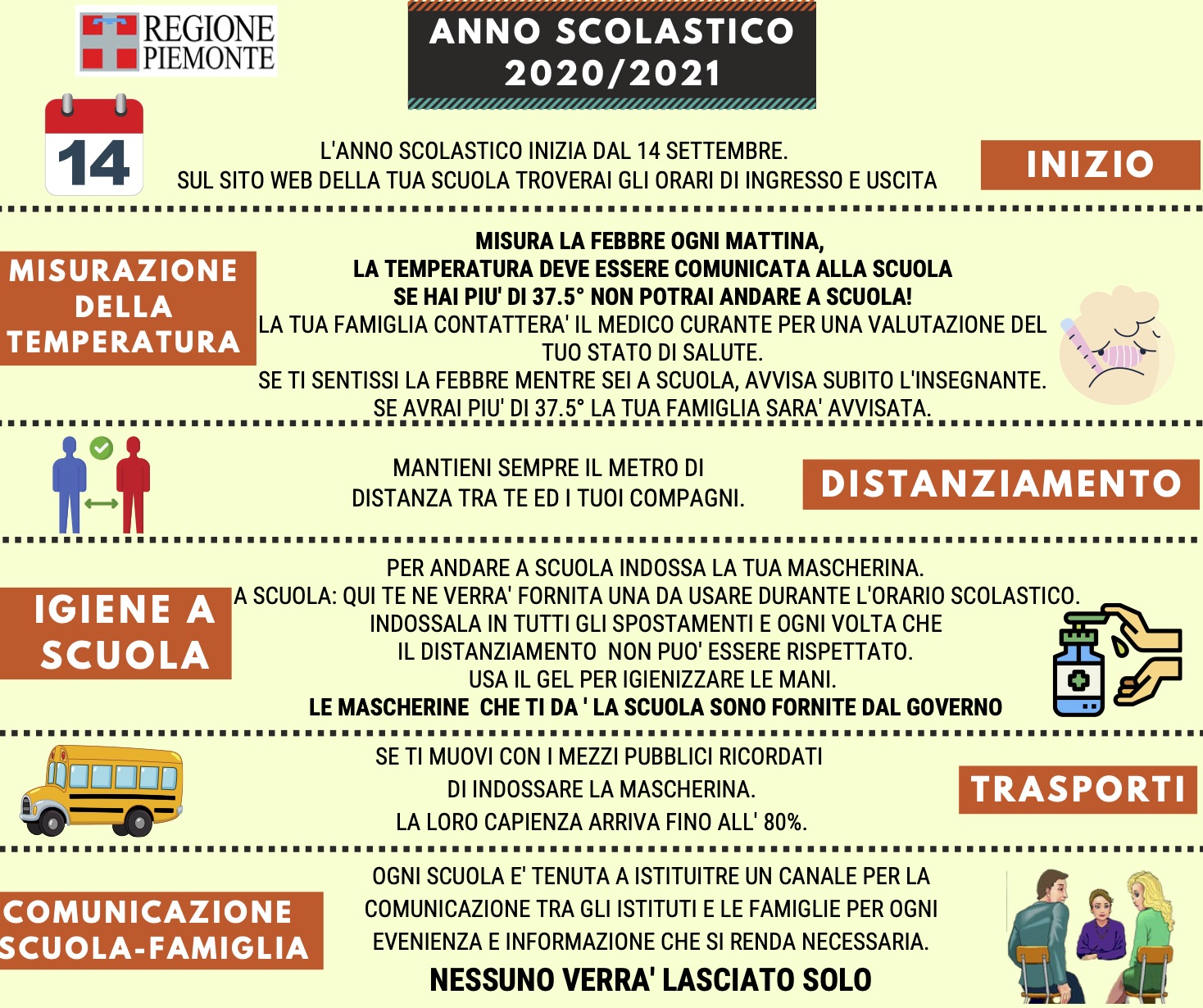 Si comunica che anche per il corrente anno scolastico, la Regione Piemonte ha trasmesso le linee di indirizzo per l'attuazione del “Piano Scuola Sicura” al fine di ridurre il rischio di una massiva chiusura delle scuole e del ritorno alla DAD in modo generalizzato in caso di peggioramento del quadro epidemiologico. Il Piano prevede l'avvio di un programma di screening differenziato tra Scuola Primaria e Scuola Secondaria con finalità preventive e di contenimento, oltre ad un programma di screening per tutto il persona
